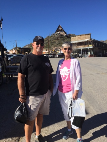 On 4/14 we went out with our park friends Mary and Bill, Jane and Ken (both couples from Minnesota) to the Aquarius Casino in Laughlin, NV. We also met with several other couples (family and friends of Jane and Ken). It was seafood buffet night which was great and also included alcoholic drinks. After dinner, we enjoyed dancing and listening to the band at the casino. The next day Kirk took me golfing at Los Lagos (just us this time), and I allowed him to give me a few pointers. These pointers actually improved my game immediately. Why have I been so stubborn all these years. Now to improve my short game!