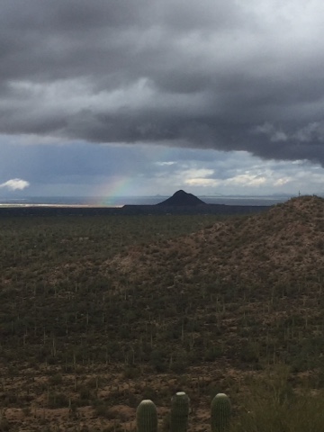 Morning coffee view of the SuperstitionsAfter returning from our weekend in Mesa, it was back to work the next day. Well, the winds must have missed us. I was running an errand after work 4/3, and came out of the store to what I thought felt and looked like hurricane winds in AZ. Shopping cart stalls were spinning around the parking lot, and I could barely keep my eyes open to get to the truck. Once in the truck I called Kirk. He had me stay where I was, as it was even worse on the hill where our RV resort is. I finally made it home only to find that the winds had reached up to 90 mph, even knocking over Kirk's motorcycle, and the Traeger again. So, now you can all see why we are so exasperated with the wind. The wind won, we were worn out!